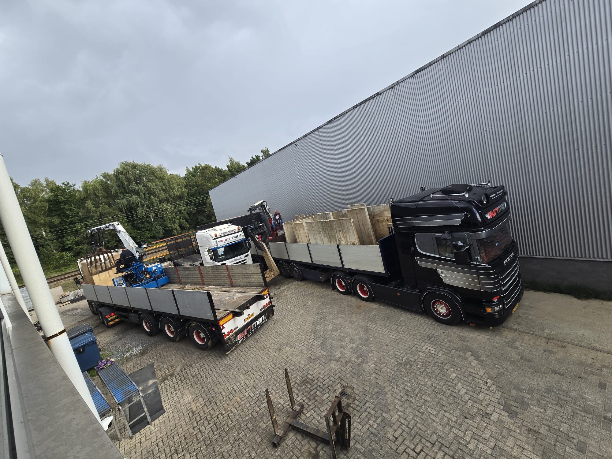Onze vrachtwagens zijn uitgerust met eigen laad- en loskranen, waardoor wij in staat zijn om een breed scala aan steen- en betonproducten zelfstandig bij u op locatie te laden en lossen. Neem vandaag nog contact met ons op voor meer informatie over onze diensten of om uw project te bespreken!